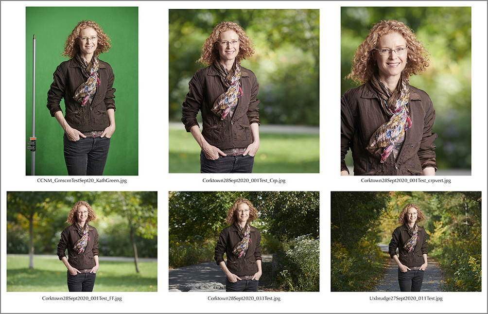 Before they even approved of the green screen idea I headed out, on a weekend, to start collecting background images because I knew if I waited I’d run out of opportunities and options. And they didn’t want fall backgrounds…they wanted summery backgrounds. Furthermore, I knew I’d be able to use the images as backgrounds for other shoots even if they chose to go in another direction. After I had a few initial background shots I photographed myself in studio dressed as If I were outside and mocked up a few test shots.